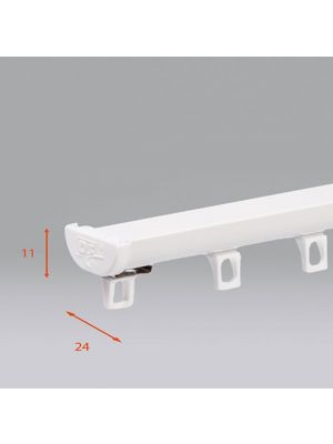 Deze zeer soepel lopende KS en DS gordijnrails is geschikt voor zeer zware gordijnen en wordt veel in projecten gebruikt, de metalen bevestigings steunen zijn zeer degelijk voor een duurzame montage van uw gordijnrails